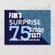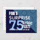 75 YEARS BLUE PATTERN Here's a trendy save the date diagonal design with fun lettering for a SURPRISE birthday party. Modern and elegant! All text is totally customisable, so also suitable for a 71 72 73 74 75 76 77 78 and 79 year birthday, or any other year you need.