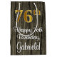 This luxurious, stylish, and sophisticated birthday themed gift bag design features a large ordinal number “76th” having an imitation/faux gold-like look, in addition to the birthday greeting message “Happy 76th Birthday,” and an editable recipient name in a script-style font. The background has a faux wood-inspired pattern. An elegant gift bag like this might be used when wrapping presents being given to somebody in celebration of their seventy sixth birthday. [~Z0000520]
