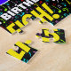 This upbeat and fun birthday-themed jigsaw puzzle design features a large number “76” with a multicolored rainbow spectrum inspired gradient pattern, along with the message “HAPPY 76th BIRTHDAY,”, and an editable recipient name. The background has a vibrant pattern of music notation symbols having various sizes and colours. An exciting, personalised birthday puzzle like this might be used to celebrate somebody’s seventy-sixth birthday. These might be extra special if that person is a composer, a songwriter, a singer, a musician, or appreciates music. [~Z0000608]