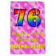 This loving, cheerful, and fun birthday-themed gift bag design features a large number "76" with a rainbow spectrum gradient inspired pattern, along with the message "Happy 76th Birthday,", and a customisable recipient name. It also has an upbeat background featuring pink-coloured heart shapes within a stripes pattern. A happy gift bag like this might be a fun way of wrapping a birthday present or gift being given to somebody who is celebrating their seventy sixth birthday. [~Z0000511]