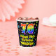 This colourful and fun birthday paper cup design features a large number “76” having a rainbow spectrum gradient inspired pattern. It also features the message “Happy 76th Birthday,”, and a custom name. The background features a multicolored pattern inspired by a field of stars. Vibrant, colourful paper cups like this might be fun to have at a birthday celebration being held to celebrate somebody’s 76th birthday. [~Z0000540]