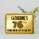 The front of this stylish and 1920s/1930s style inspired seventy-sixth birthday celebration foil invitation card design features an editable name, a fancy art deco style inspired number “76th”, the message “BIRTHDAY PARTY”, and a multi-line border. The back features personalised details about the event, such as the date, time, location, and any other information that may be important. Stylish, luxurious, personalised invitations like these might be used to invite attendees to a birthday party/gathering being held to celebrate somebody’s 76th birthday. [~Z0000594]