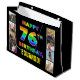 This cheerful and joyful birthday themed gift bag design features the message “HAPPY 76TH BIRTHDAY,“ with a multicolor rainbow spectrum inspired gradient pattern, along with an editable recipient name. To the left and the right of the rainbow-patterned message on the front are some photos that can be personalised, perhaps with photos of the recipient, the recipient’s family and friends, and/or the sender(s) of the gift. A giftbag like this might be used when giving a present in honour of somebody’s seventy-sixth birthday. (Photography © Storytree Studios, Stanford, CA.) [~Z0000668]