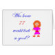 "Who knew 77 would look so good?" An adorable design for that self confident 77 year old who knows she looks good. Makes a great 77th birthday gift.