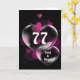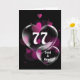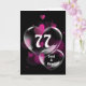 Pink hearts and white translucent heart-shaped bubbles for 77th anniversary on black background.