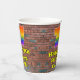 This fun and exciting urban graffiti and street art themed birthday paper cup design features a large number “77” having a colourful rainbow spectrum gradient inspired pattern. It also features the message “Happy 77th Birthday,”, and a custom name. The background features a brick wall pattern. Colourful, vibrant paper cups like this might be fun to use at a birthday celebration/party being held to celebrate somebody’s seventy seventh birthday. [~Z0000543]