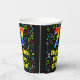 This colourful and cheerful music-themed birthday paper cup design features a large number “77” having a rainbow spectrum gradient inspired pattern. It also features the message “Happy 77th Birthday,”, and a custom name. The background features a multicolored pattern having music notes and symbols of various sizes and colours. Vibrant, colourful paper cups like this might be fun to have at a birthday party being held in celebration of somebody’s seventy seventh birthday. [~Z0000541]