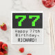 This geeky and nerdy birthday paper napkin design features a large green vintage computer gaming style number "77" on a black coloured background. It also features the birthday greeting message "Happy 77th Birthday,", and a name that can be edited. Silly and nerdy paper napkins like this might be useful at a party being held to celebrate the seventy seventh birthday of a computer system administrator, a computer programmer, or somebody who enjoys vintage video games. [~Z0000404]