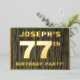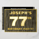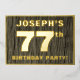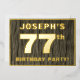 The front of this bold seventy-seventh birthday party/celebration foil invitation card features a personalised name, a large number “77th”, the message “BIRTHDAY PARTY!”, and a border, all in foil. The background of the front features a rustic, yet sophisticated, faux wood grain look inspired pattern. The back features personalised details about the event, such as the date, time, venue/location, and any other useful information. Customised invitations like these might be used to invite attendees/guests to a birthday party/gathering being held in celebration of somebody’s 77th birthday. [~Z0000598]