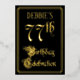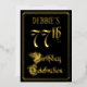 The front of this opulent and elegant foil seventy-seventh birthday celebration/party invitation design features the message “77th Birthday Celebration” in luxurious script-style text. It also has a personalised name. The background of the front is coloured black by default (although it can be customised to a different colour). The back features personalised details about the event, such as the date, time, location, and any other relevant information. Luxurious, ornate, customisable invitations like these might be used to invite guests to a birthday celebration being held in celebration of somebody’s 77th birthday. [~Z0000589]