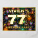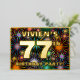 The front of this joyful seventy-seventh birthday celebration foil invitation card design features a personalised name, a large number “77th”, the message “BIRTHDAY PARTY!”, and a border. The background of the front features a fun, multicolored bursting celebratory fireworks-inspired pattern. The back features personalised details about the event, such as the date, time, location/venue, and any other relevant information. Customised invitations like these might be a fun way to invite attendees/guests to a birthday party/gathering being held in celebration of somebody’s 77th birthday. [~Z0000602]