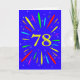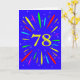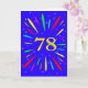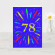 An explosive 78th birthday card! What a wonderful way to send birthday greetings. The number 78 in bright yellow with an explosion of bright colours and stars.