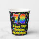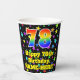 This cheerful and exciting birthday-themed paper cup design features a large number “78” with a rainbow spectrum gradient inspired pattern, along with the message “Happy 78th Birthday,”, and an editable name. The background features a multicolored star field inspired pattern. Colourful, vibrant paper cups like this might be fun to use at a birthday celebration being held to celebrate somebody’s seventy eighth birthday. [~Z0000540]