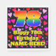 This happy and colourful birthday paper napkin design features a large number “78” having a rainbow spectrum gradient inspired pattern. It also features the message “Happy 78th Birthday,”, and a customisable name. The background features a pattern of red, pink, and purple heart shapes of various sizes. Loving, joyful paper napkins like this might be fun to use at a birthday celebration being held in celebration of somebody’s seventy eighth birthday. [~Z0000550]
