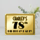 The front of this 1920s/1930s style inspired and elegant seventy-eighth birthday party/celebration foil invitation features a custom name, a large art deco look inspired number “78th”, the message “BIRTHDAY PARTY”, and a border pattern consisting of lines. The back features personalised details about the event, such as the date, time, venue, and any other important information. Stylish, luxurious, personalised invitations like these might be used to invite guests to a birthday party being held to celebrate somebody’s 78th birthday. [~Z0000592]