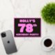 The front of this fun and bold seventy-eighth birthday party foil invitation/announcement card features an editable name, a large number “78th”, the message “BIRTHDAY PARTY!”, and a border, all featuring a girly light pink and dark pink stripes pattern. The back features personalised details about the event, such as the date, time, venue, and any other information that may be relevant. Editable invitations like these might be used to invite guests/attendees to a birthday party/gathering being held to honour somebody’s 78th birthday. [~Z0000597]