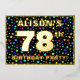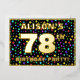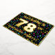 The front of this vibrant and eye-catching seventy-eighth birthday party/celebration foil invitation card design features a personalised name, a large number “78th”, the message “BIRTHDAY PARTY!”, and a border. The background of the front features a joyful, colourful pattern of star shapes. The back features personalised details about the event, such as the date, time, location, and any other information that may be important. Customised invitations like these might be a fun way to invite attendees to a birthday gathering/party being held to honour somebody’s 78th birthday. [~Z0000600]