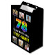 This upbeat and joyful birthday-themed gift bag design features a large number “78“ having a vibrant rainbow spectrum inspired gradient pattern, along with the message “Happy 78th Birthday,“ and a custom recipient name. Above and below the message are some photos that can be personalised, perhaps with photos of the recipient, the recipient’s family and friends, and/or the sender(s) of the gift. A birthday themed giftbag like this might be used when giving a present or gift in celebration of somebody’s seventy-eighth birthday. (Photography © Storytree Studios, Stanford, CA.) [~Z0000669]