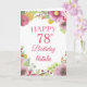 78th Birthday Watercolor Floral Flowers Pink Card with personalised name and age. For further customisation, please click the "Customise it" button and use our design tool to modify this template.