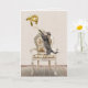 Grey tabby cat with gold foil balloons on an old-fashioned chair for 79th birthday.