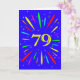 An explosive 79th birthday card! What a wonderful way to send birthday greetings. The number 79 in bright yellow with an explosion of bright colours and stars.