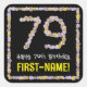 This fun, nature-inspired birthday-themed square sticker design has the message “Happy 79th Birthday,” and a custom recipient name. The large number “79” plus the border consist of flower icons. Floral birthday themed stickers like these might be distributed or used at a birthday party celebrating somebody’s seventy-ninth birthday, or perhaps used when preparing invitations or gifts for such an event. [~Z0000652]