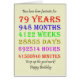 79th birthday card counting down the years, days, months, hours, and minutes. A card to give pause for thought! Leap years have been taken into account!