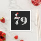 Red, white and black party balloon bouquet on black background for 79th birthday.