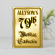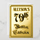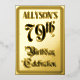 The front of this elaborate seventy-ninth birthday celebration foil invitation/announcement card design features the message “79th Birthday Celebration” in luxurious script-style text. It also features a custom name. The back features personalised details about the event, such as the date, time, venue, and any other information that may be relevant. Fancy, elegant, customised invitations like these might be used to invite guests to a birthday party/celebration being held to celebrate somebody’s seventy-ninth birthday. [~Z0000596]