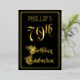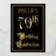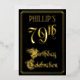 The front of this luxurious and elegant foil seventy-ninth birthday celebration invitation design features the message “79th Birthday Celebration” in fancy script-style text. It also features an editable name. The background of the front is coloured black by default (although it can be customised to a different colour). The back features personalised details about the event, such as the date, time, location, and any other information that may be relevant. Ornate, fancy, editable invitations like these might be used to invite guests to a birthday party/celebration being held to celebrate somebody’s seventy-ninth birthday. [~Z0000589]