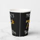 This opulent and luxurious birthday-themed paper cup design features a personalised name and the message “79th Birthday Party”. The large number “79th” has an imitation/faux gold-inspired colouring pattern, and the words “Birthday Party” are in ornate script-style text. The background is coloured black by default (although it can be customised). Fancy, elegant paper cups like this might be useful at a birthday celebration/party being held in celebration of somebody’s 79th birthday. [~Z0000567]