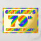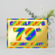 The front of this upbeat and vibrant seventy-ninth birthday party/celebration foil invitation card features a customisable name, a large number “79th”, the message “BIRTHDAY PARTY!”, and a border, all featuring an exciting, colourful, rainbow spectrum inspired gradient pattern. The back features personalised details about the event, such as the date, time, location/venue, and any other information that may be important. Joyful, eye-catching, customised invitations like these might be used to invite guests to a birthday gathering/party being held to celebrate somebody’s 79th birthday. [~Z0000593]