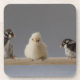 7 Baby Pet Chickens on a Perch all Looking at the Odd Chicken, 4 days old, Buff Polish, Silver Laced Wyandotte. | Grove Pashley | AssetID: 103917100