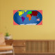 7 Continents Print Colourful Huge 3 ft by 1 1/2 ft