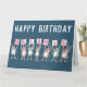 Happy Birthday card for someone with a 7 Letter Name. Fun Happy Birthday Rabbits Card with illustration of Rabbits in pink and blue. The rabbits are holding up cards to spell out the name.