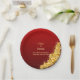 7" Names and Gold Flowers on Red Maroon Paper Plate