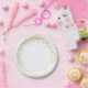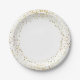 These paper plates are shown in a cute print of petite Golden coloured stars all about the rim, white centre.