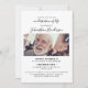 Modern, stylish celebration of life, memorial service or funeral invitation, featuring a photo of your loved one on the front with your custom text in an elegant handwritten script and a simple, modern font, and a 6-photo collage on the back. All text is fully customisable. If you need any help customising this, please message me using the button below and I'll be happy to help.