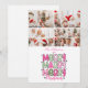 Celebrate the season in cheerful style with this vibrant photo holiday card featuring a stacked “Merry Merry Merry Christmas” design in festive pinks and greens. Playful patterns like plaid, polka dots, and stripes add a charming, modern twist. The top section includes space for two favourite family photos, while the customisable text allows you to add your family name and the year for a personal touch. A sweet way to send warm wishes and memories to friends and loved ones.