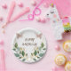 7" Round Floral Happy Birthday Paper Plate.