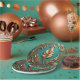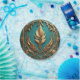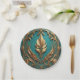 Beautiful gold leaves against a teal background cover this 7" round paper plate.