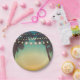 7" Round Paper Plate Beach Sunset Palm Trees Strin