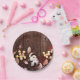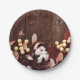 7" Round Paper Plate Cotton Branch on Dark Wood St