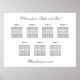 7 Table Elegant Minimalist Seating Chart, please personalise the names of the couple and the names of the guests along with any of the other text that you may wish to personalise. An elegant seating chart featuring stylish black text in a clean minimalistic layout on a white background.