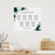 This beautiful wedding seating chart accommodates up to 70 guests across 7 tables with 10 seats per table. The charming rustic watercolor artwork showcases a delightful combination of roses in shades of emerald green and sage, surrounded with sprigs of eucalyptus leaves and garden greenery. The script calligraphy of the title lends an air of sophistication, and there's ample space below for the couple's names and wedding date. Not only does it bring an element of grace and refinement to your wedding reception, but it also helps your guests easily locate their designated seats.