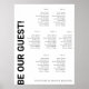 This customisable simple elegant 7 table wedding seating chart template will be a great addition to Wedding party decor. It features Be our guest written in bold black letters against white background. Text is fully editable, to make advanced changes, please select "Click to customise further" option under Personalise this template. Matching Wedding enclosure card, RSVP card and day-off stationery is also available, check out "Black and white Bold letters wedding stationery and decor" collection in my store Wowweds.