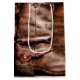 7lx4.5wx10h Medium Gift Bag Cowboy Boots Barn Wood