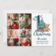 7Photo Blue Teddy Baby 1st Christmas Holiday Card