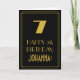This Roaring '20s era inspired and vintage/retro style birthday-themed greeting card design features a large art deco appearance inspired number "7", the message "HAPPY 7th BIRTHDAY,", a personalised name, and a border pattern consisting of thin lines on the front. The front features a black-coloured background. The inside has a customisable birthday greeting message, or could perhaps be cleared and left blank if a message is to be written by hand instead. A customised birthday greeting card like this might be sent to celebrate somebody’s seventh birthday. [~Z0000499]