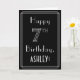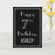 The front of this elegant 1920s-1930s art deco inspired birthday themed greeting card design features the message “Happy 7th Birthday,” and a custom recipient name. The number “7th” on the front has a fancy lined styling, and there is also a multi-line border. The inside features a personalised birthday greeting message, or could perhaps be cleared and left blank if a message is to be written by hand instead. A luxurious, personalised birthday greeting card like this might be sent to celebrate somebody’s seventh birthday. [~Z0000640]